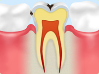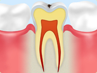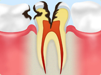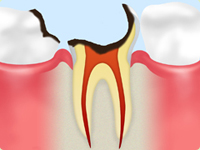 神経まで虫歯が進行した状態。 熱い物がしみるようになるほか、何もしていなくてもズキズキと激しく痛むようになります。 |