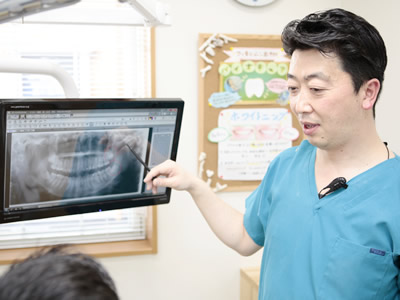 どうしても神経を抜かなければいけないケースはありますが、当院では極力神経を抜かないで治療するように心がけています。また患者さんにとって一番嫌なことは思わぬ痛み、原因がわからないのに治療中痛みがあることだと思います。ですので当院ではモニターを通して、患者様にしっかりと治療内容を説明し、ご納得のを治療をいたします。
